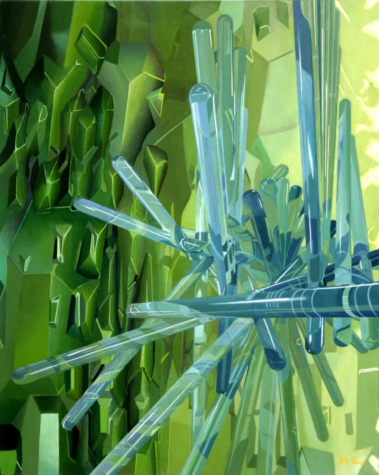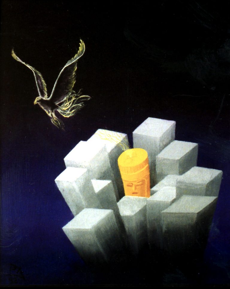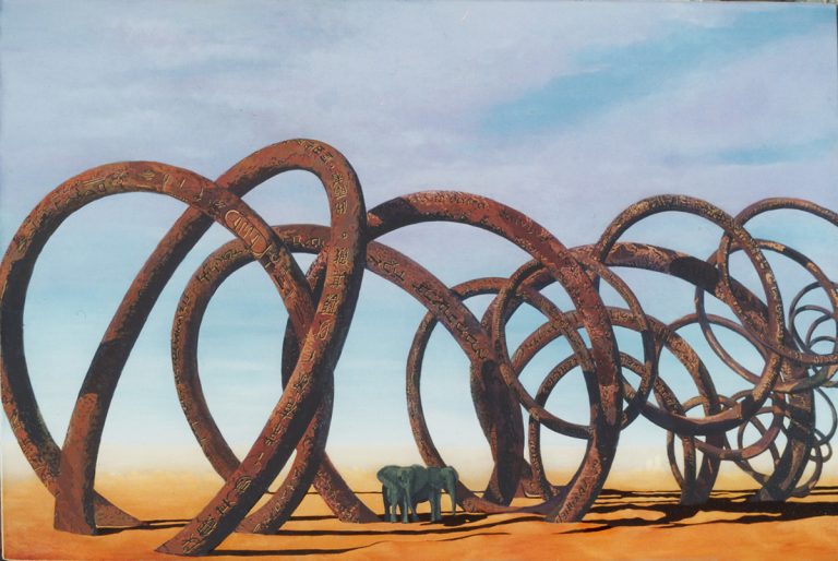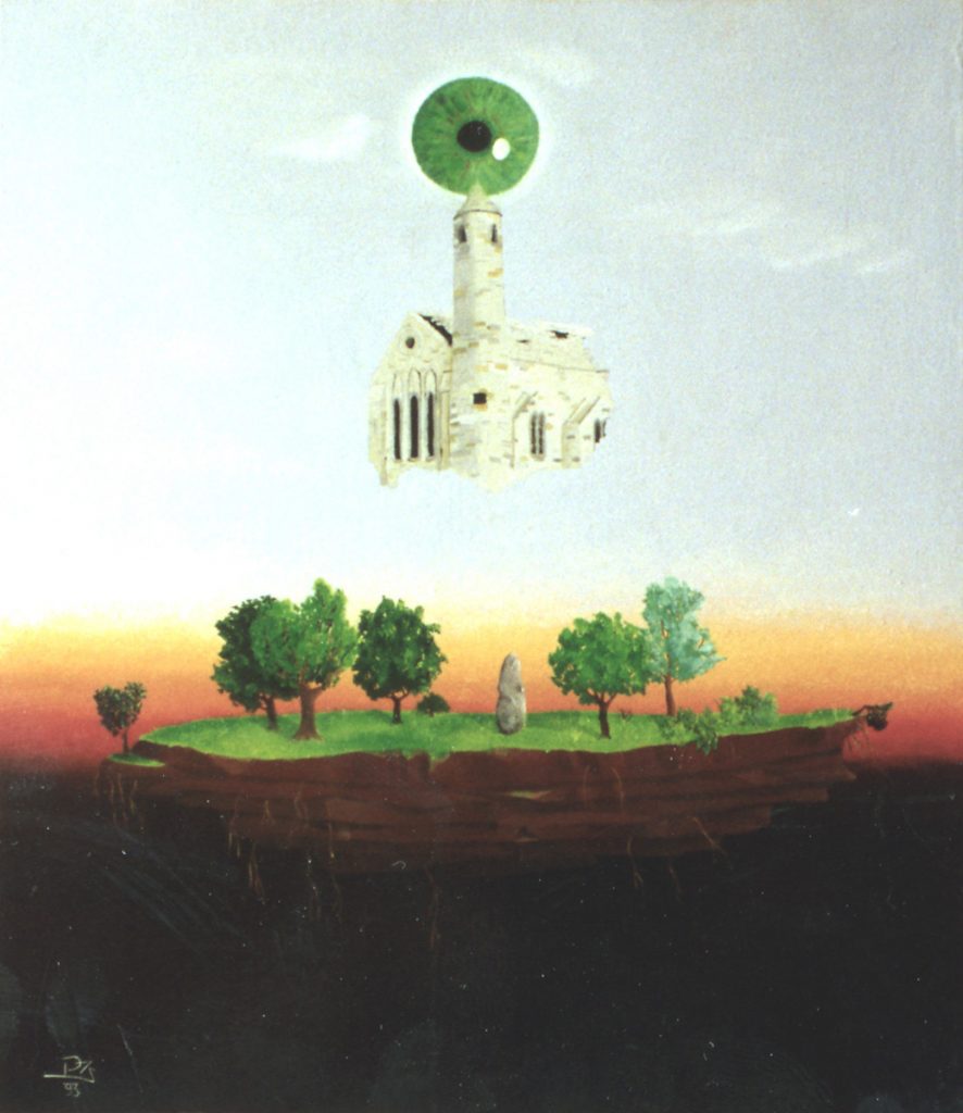 Mes peintures sont des visions oniriques de monde en devenir marquées par la grandeur et parfois la déviance de l’esprit humain. L’humain en est banni parce que non digne d’y être représenté.