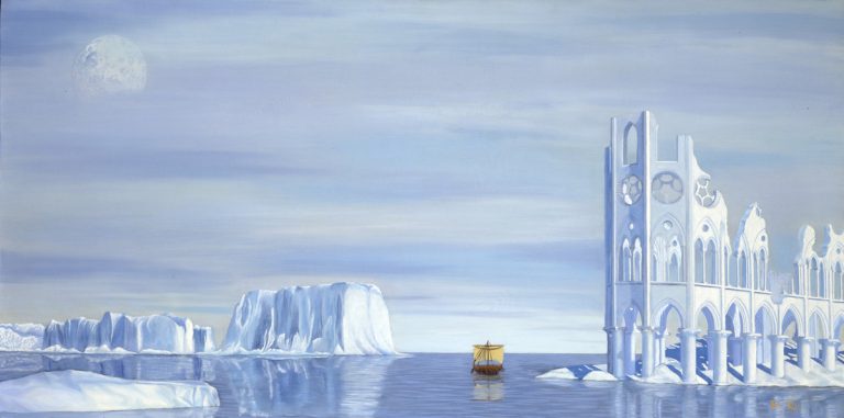Mes peintures sont des visions oniriques de monde en devenir marquées par la grandeur et parfois la déviance de l’esprit humain. L’humain en est banni parce que non digne d’y être représenté.