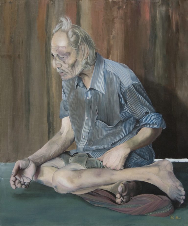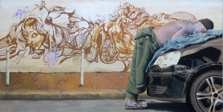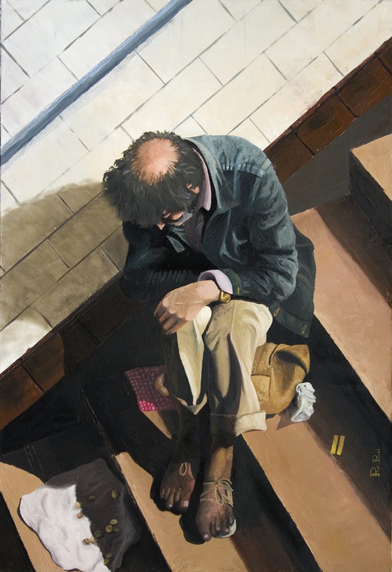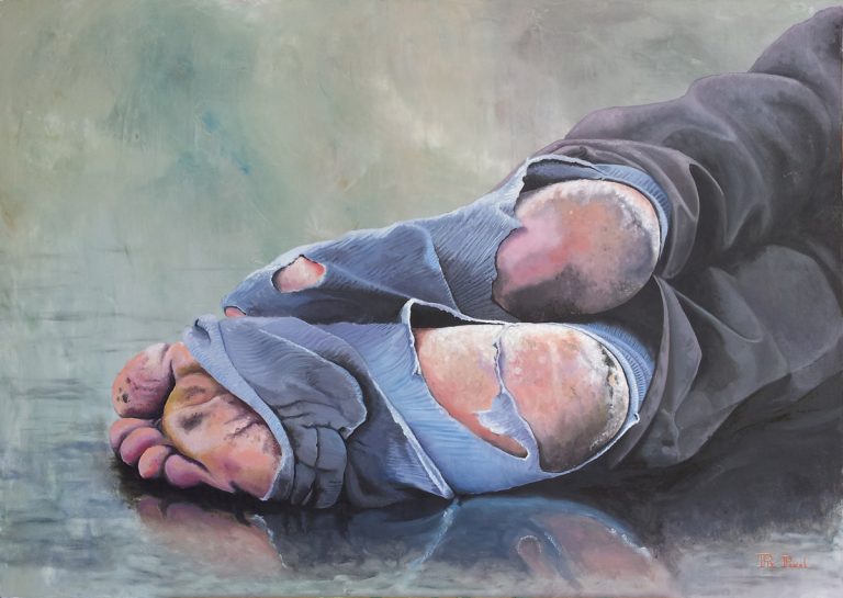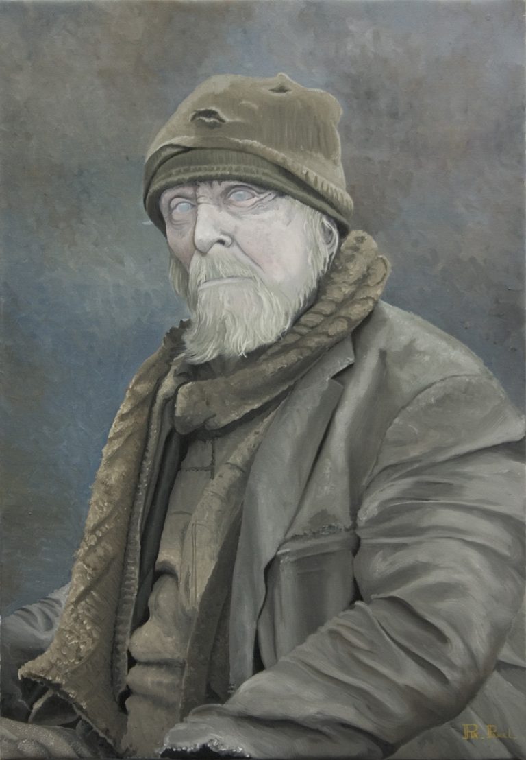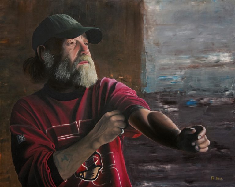 Les laissés pour compte, ce pan de la socièté délaissé, m’a toujours touché et révolté. De même que mon impuissance face à cette situation me révolte. Alors ne sachant pas quoi faire de concret je me suis mis à les peindre pour leurs donner une existence et une place perénne.